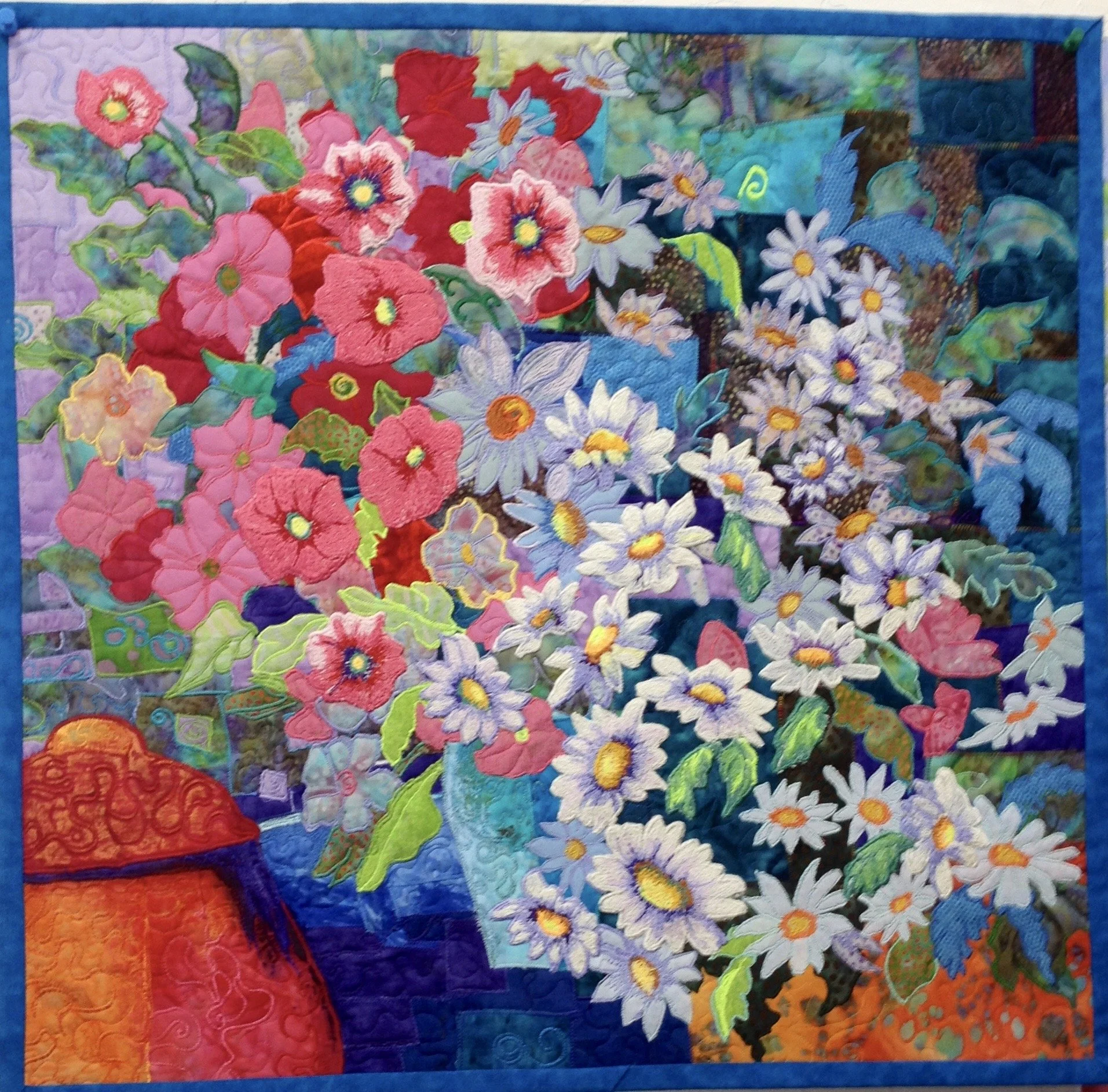 Julia Margaret’s work is an exploration of color, movement, and nature’s emotional landscape. Drawing on a lifetime between New Mexico’s mountains, her years in Aijijic, Mexico, and now the gentle hills of Boerne, TX, her art is rooted in place—yet reaches beyond it. Whether paint or fabric, every piece is a layered conversation of form, texture, and rhythm.
